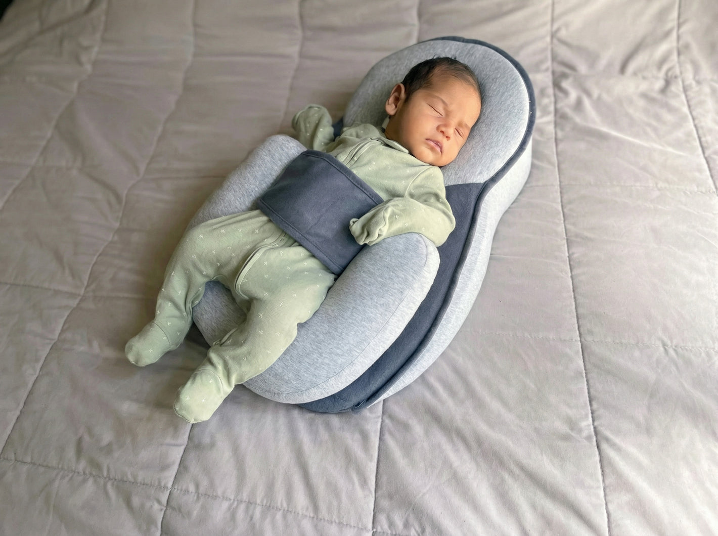 Die sanfte Schrägposition, die integrierte Kopfunterstützung und die seitliche Begrenzung unterstützen eine ruhige Liegeposition und fördern entspannte Momente. Viele Eltern schätzen das NestNap als komfortable Ergänzung für ruhigere Pausen im Alltag.