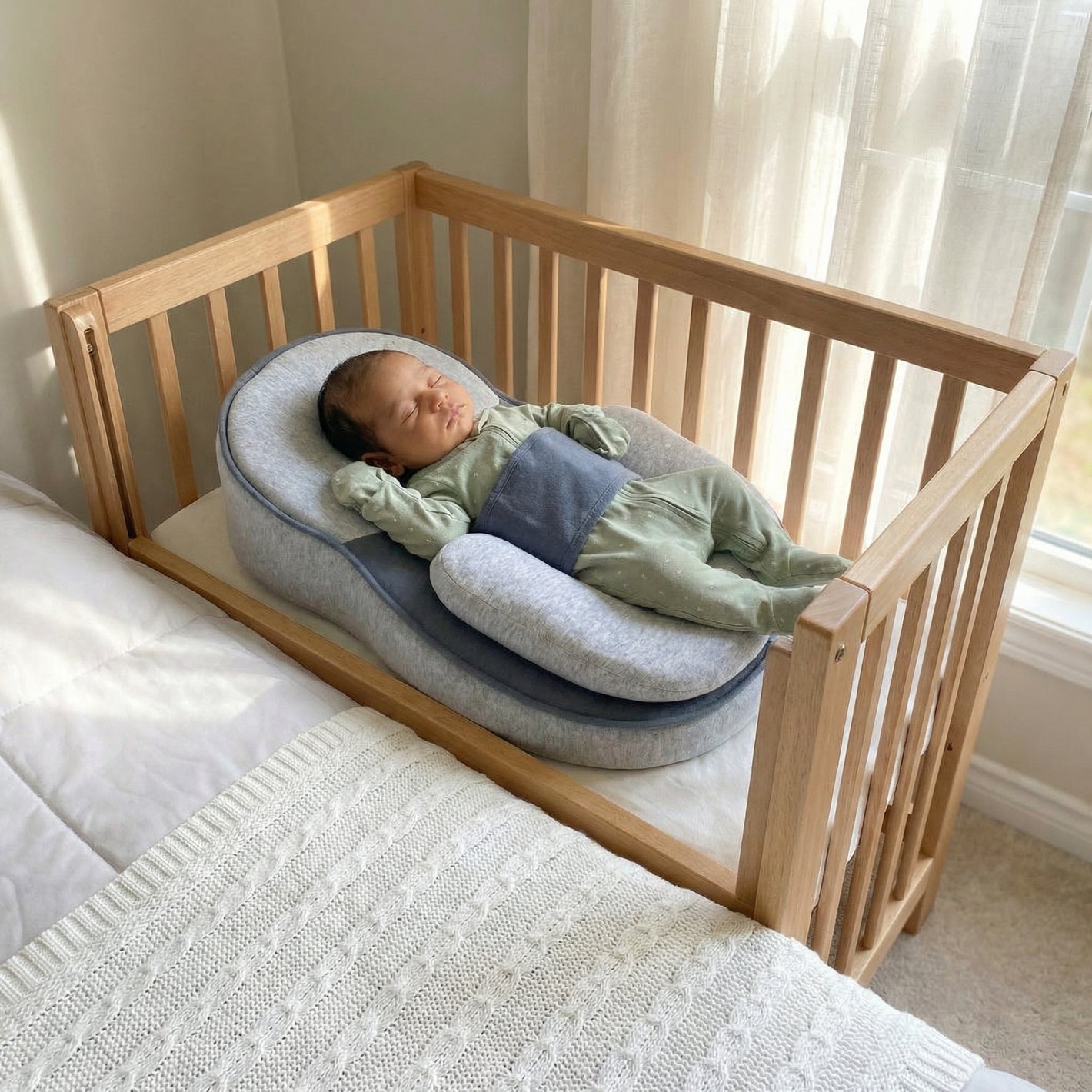 Bei der Konzeption von NestNap standen ergonomische Grundsätze und bewährte Empfehlungen rund um sicheres Babyschlafen im Fokus. Die Form, die sanfte Begrenzung und die leichte Schräglage wurden so gestaltet, dass sie eine stabile Rückenlage unterstützen und im Alltag entlasten können.
